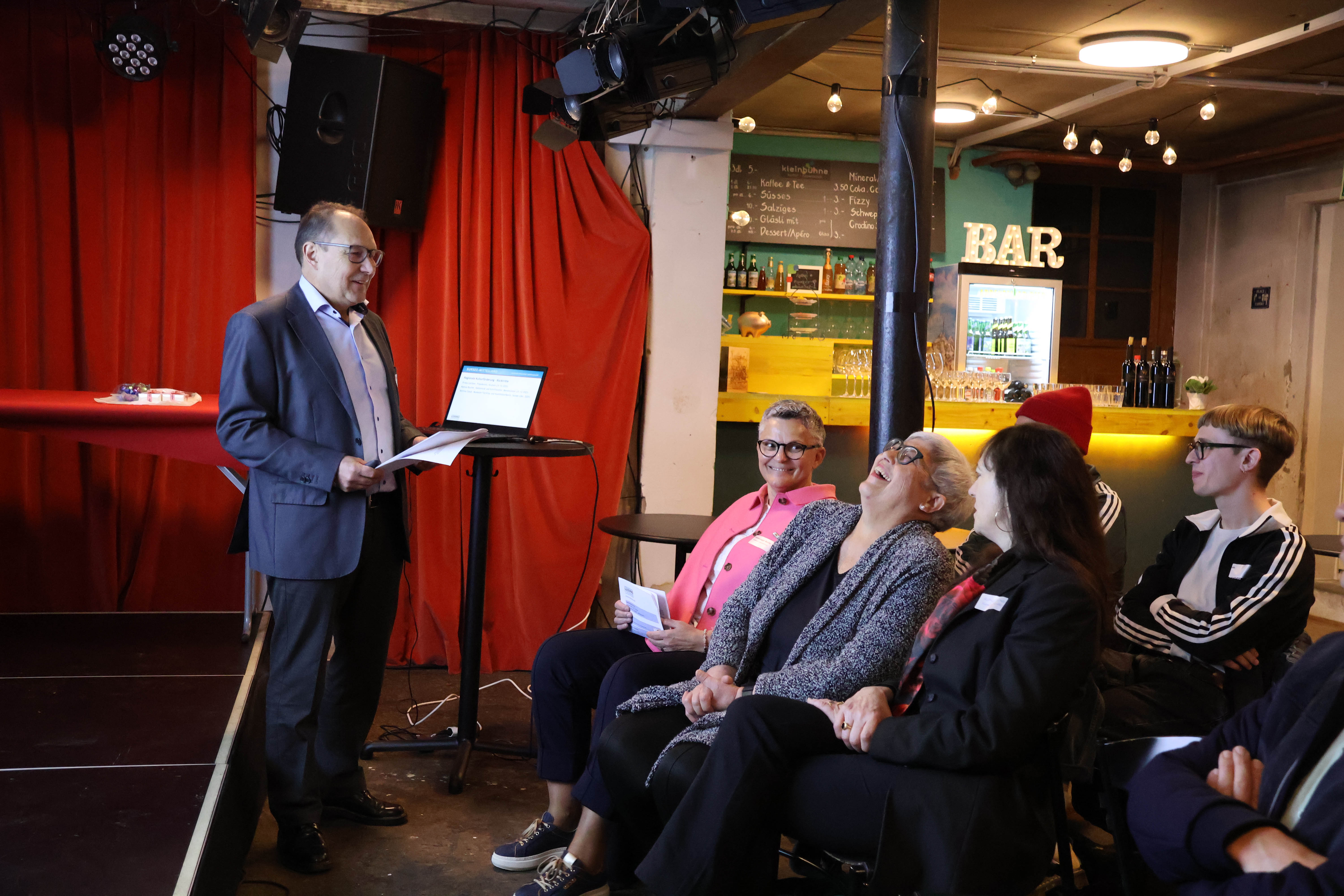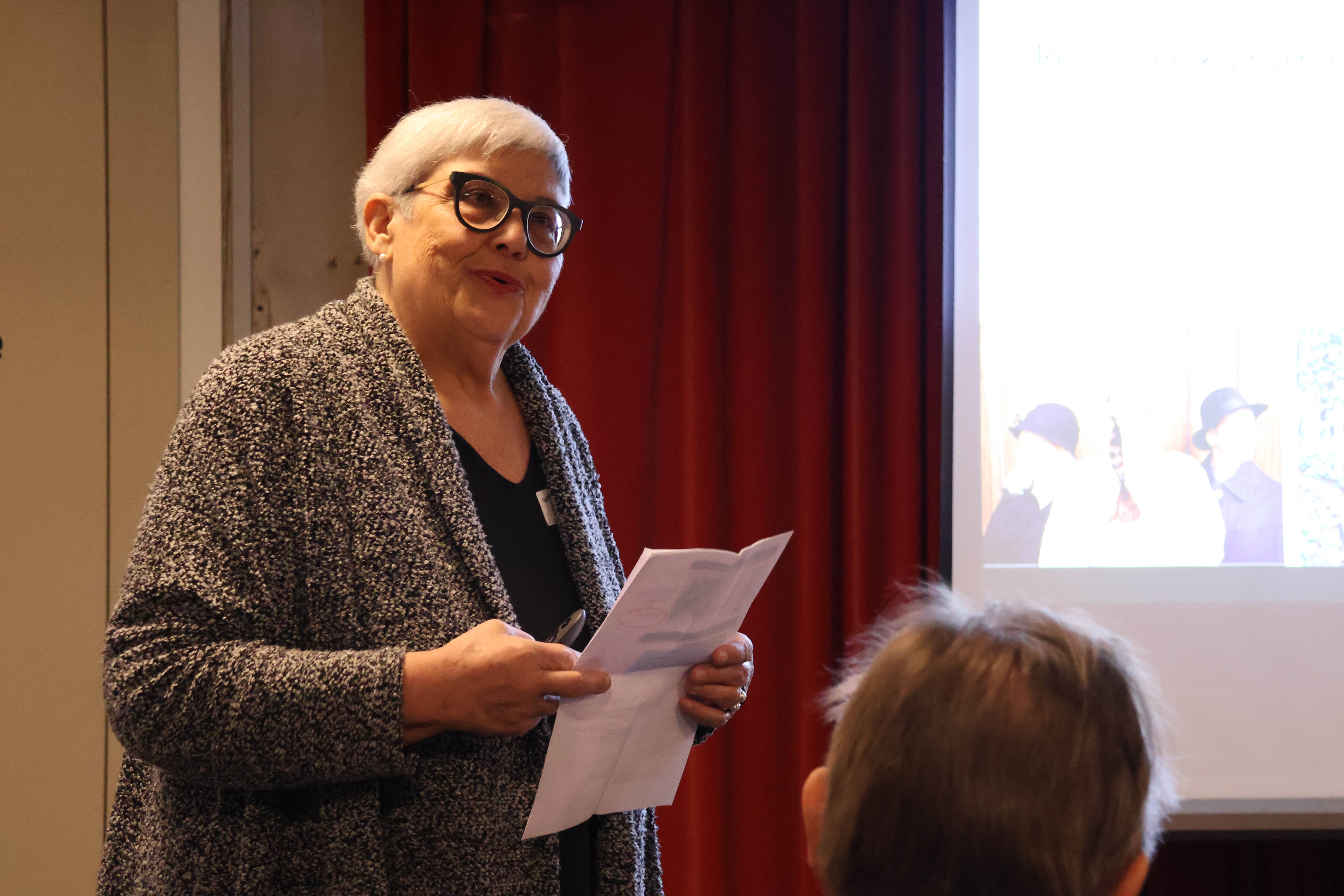 Monika Bürkli gewährte einleitend einen Einblick in das bunte Programm der Gastgeberin. Die Kleinbühne Kultur Neuenkirch ist bekannt für ein vielfältiges Kulturprogramm – von Kabarett über Musik bis zu Lesungen und Poetry Slam. Sie zeigte auf, wie die Kulturbühne durch die Beiträge der regionalen Kulturförderung gestärkt wird.